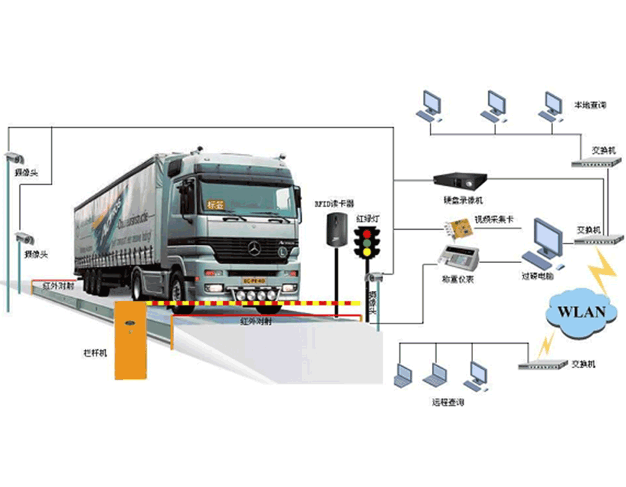 Mainly by the following components: pounds, high-precision sensors, weighing instruments, cameras, railings, to sense the coil, red and green lights, RF card reader, image acquisition card, lighting systems, computers, printers, weighing management Software;
